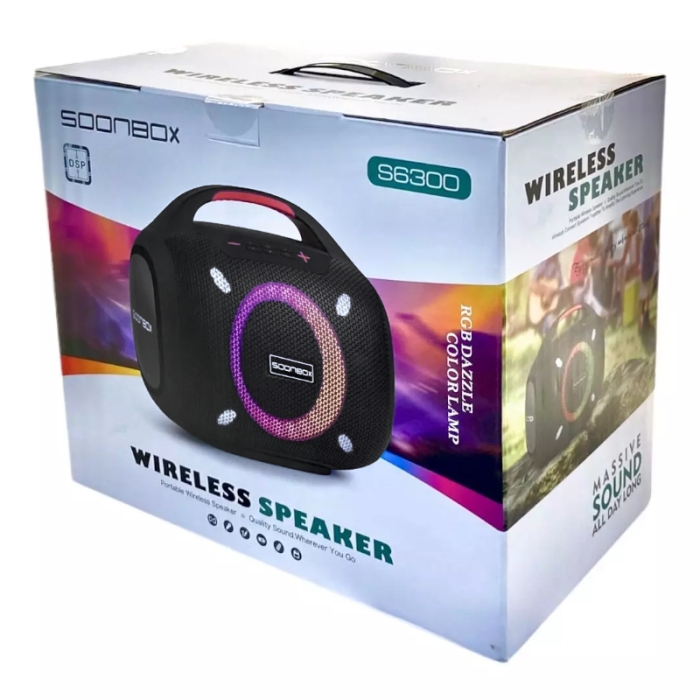 L’enceinte Bluetooth SOONBOX S6300 est idéale pour profiter d’un son puissant et clair, que ce soit à la maison, en extérieur ou lors de vos fêtes.