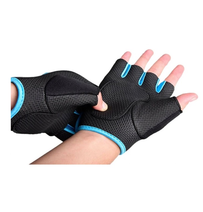 Gant de sport demi-doigts – fitness et musculation – Antidérapants – Noir – Bleu