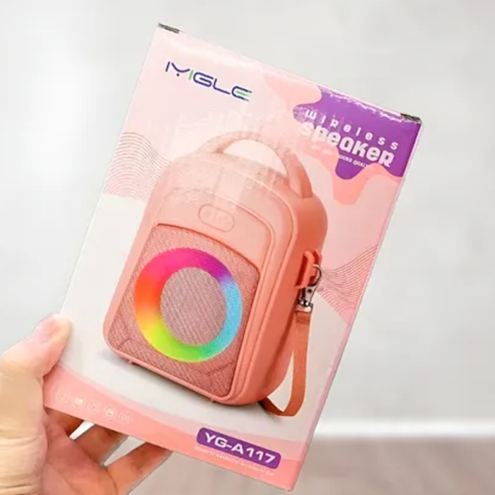 Cette enceinte Bluetooth portable avec anse de transport se distingue par son design compact et pratique, idéale pour la maison, les sorties ou les activités en plein air. Elle offre un son clair et immersif grâce à son système stéréo et ses basses renforcées (Subwoofer). Dotée d’une puissance de sortie de 5 W, de la technologie Bluetooth V5.4 et de 2,5 canaux, elle permet une connexion simple via Bluetooth, carte mémoire, USB ou FM. Compatible avec le format MP3 et couvrant une gamme de fréquences de 60 Hz à 23 KHz, elle garantit une écoute de qualité. Sa batterie rechargeable de 1200 mAh assure une autonomie de 3 à 5 heures selon le volume, avec un temps de charge de 3 à 5 heures. L’enceinte intègre également un microphone et des effets lumineux LED RGB pour une expérience encore plus complète. Conçue en plastique, elle affiche des dimensions de 103 × 65 × 141 mm pour un poids de 0,6 kg. Le pack comprend une enceinte Bluetooth YG-A117, un câble de charge et une lanière.