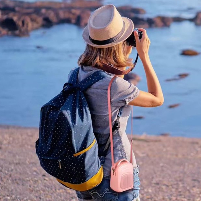 - Enceinte Bluetooth portable avec anse de transport, compacte et pratique, idéale à la maison, en sortie ou en plein air.