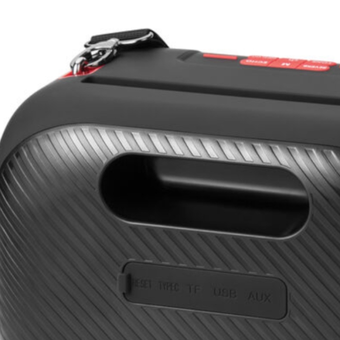 Sa connectivité polyvalente prend en charge le Bluetooth 5.3 (puce Jieli), les cartes TF, les clés USB, l’entrée AUX ainsi que les microphones sans fil pour des sessions karaoké animées.