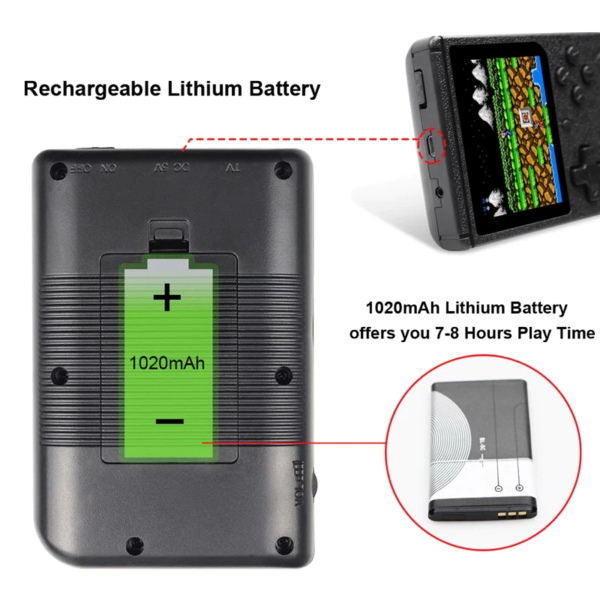 Cette console portable inclut 400 jeux FC classiques différents, vous offrant une expérience de jeu digne de votre enfance. Ouvrez-la et jouez ! La manette incluse vous permet de jouer à deux jeux. Il suffit de la connecter à la console.
