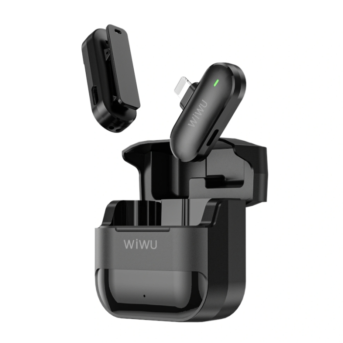Le microphone Wiwu WM001 en version Lightning est conçu en ABS de haute qualité avec un design compact et léger. Il intègre une batterie de 450 mAh accompagnée d’un boîtier de charge portable.