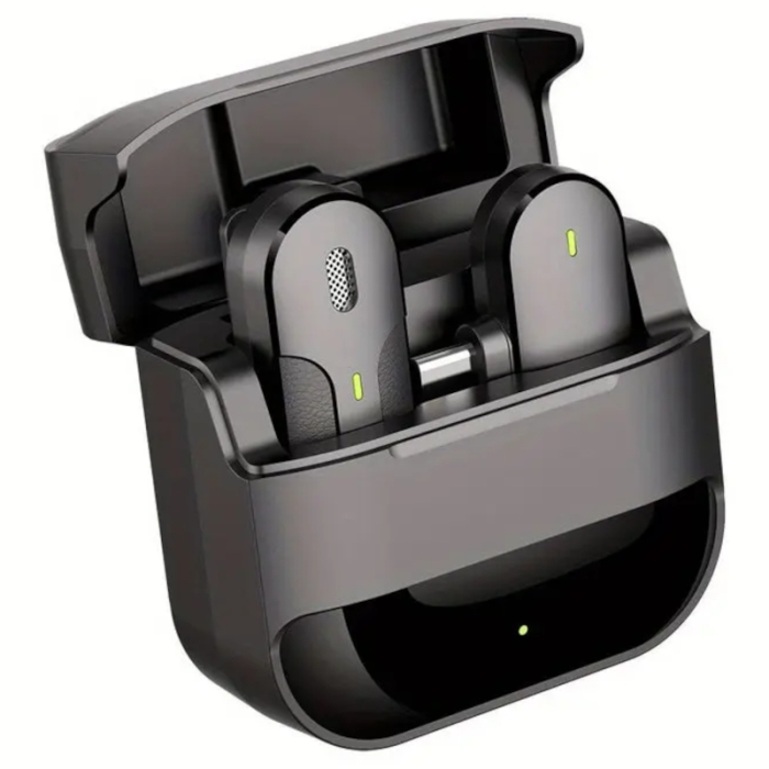 Le microphone Wiwu WM001 en version USB‑C est conçu en ABS de haute qualité avec un design compact et léger. Il intègre une batterie de 450 mAh accompagnée d’un boîtier de charge portable.