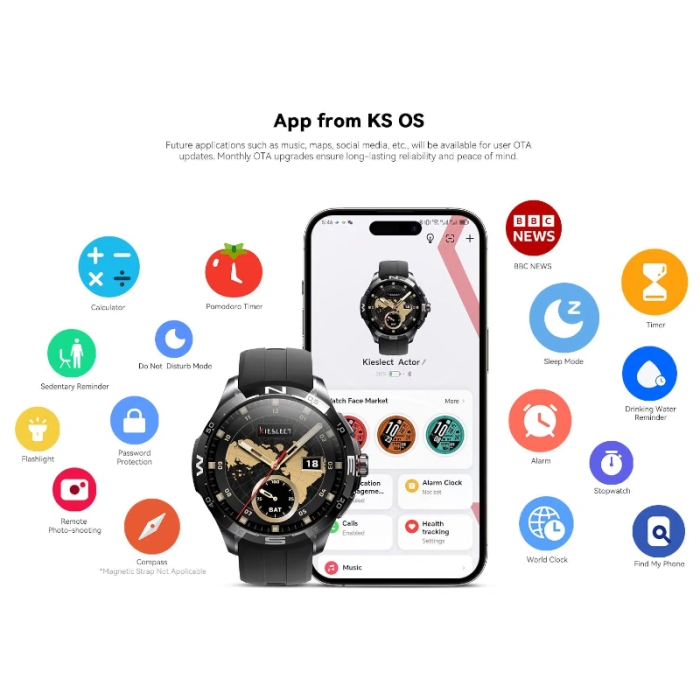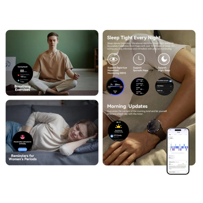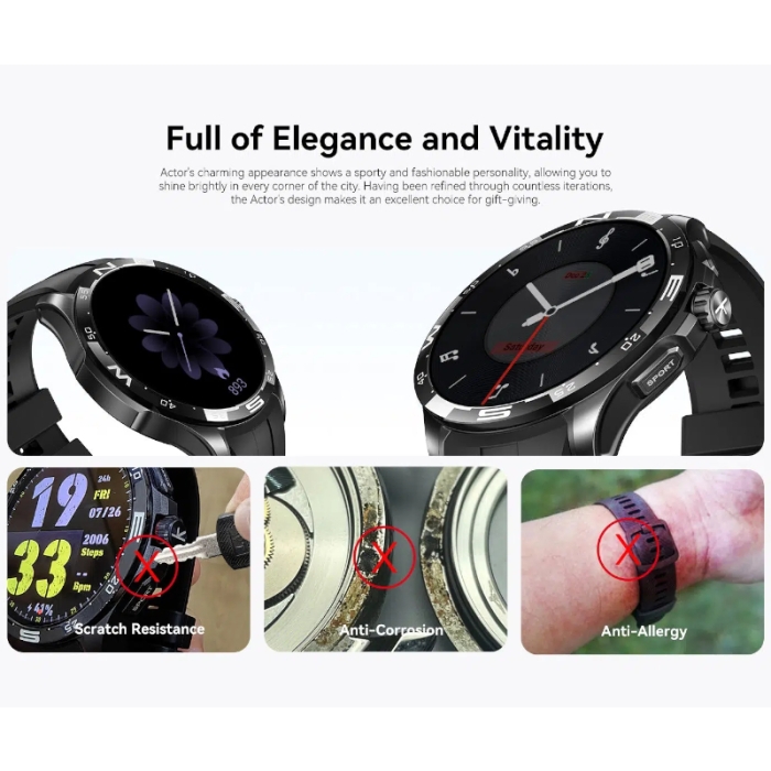 La montre connectée Kieslect Actor dispose d’un écran AMOLED LTPO de 1,6 pouces avec une résolution de 480 x 480 pixels, offrant un affichage fluide à 60 Hz et des couleurs très fidèles grâce à une couverture NTSC de 108 %.