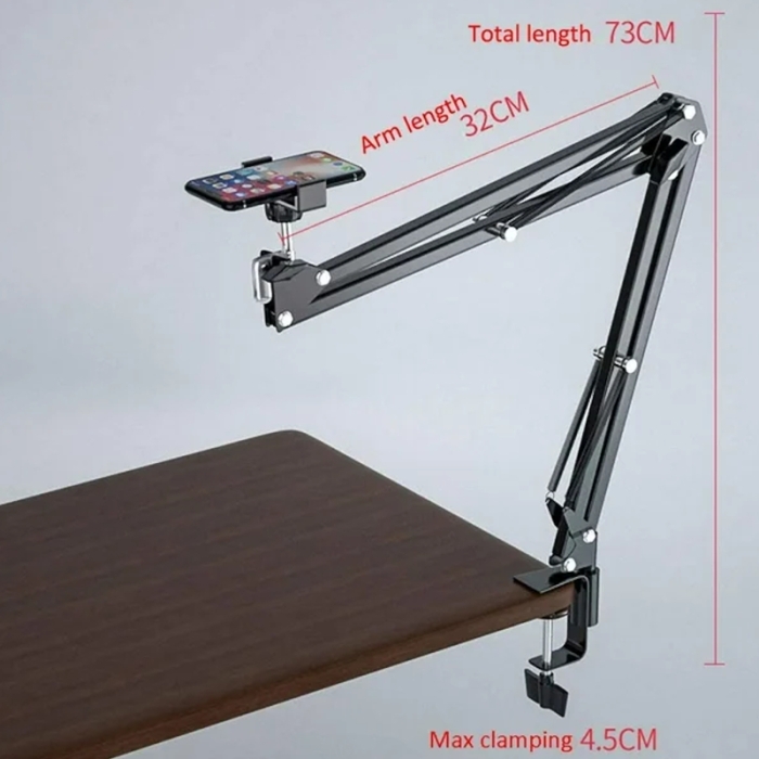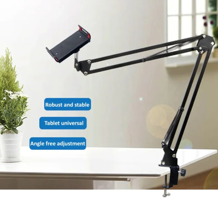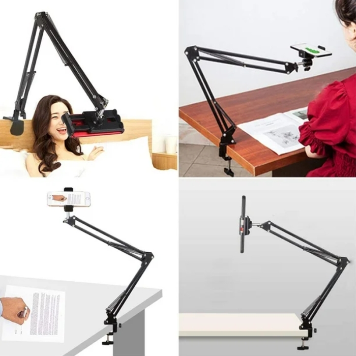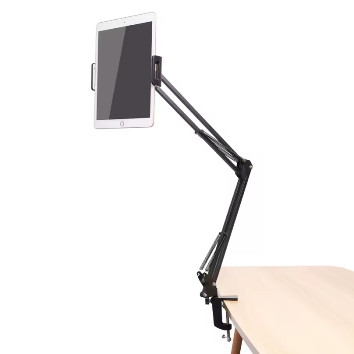 • Support de tablette et smartphone en métal, réglable et polyvalent, adapté pour le bureau ou le lit.