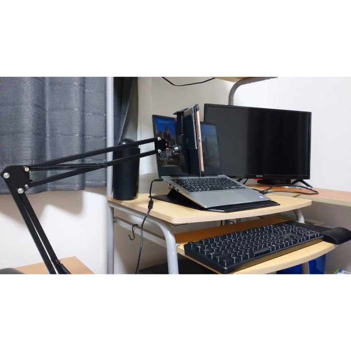 • Bras articulé pliable pour libérer de l’espace sur le bureau, facilement clipable et détachable.