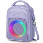 Enceinte Bluetooth portable avec anse de transport, compacte et pratique, idéale à la maison, en sortie ou en plein air.